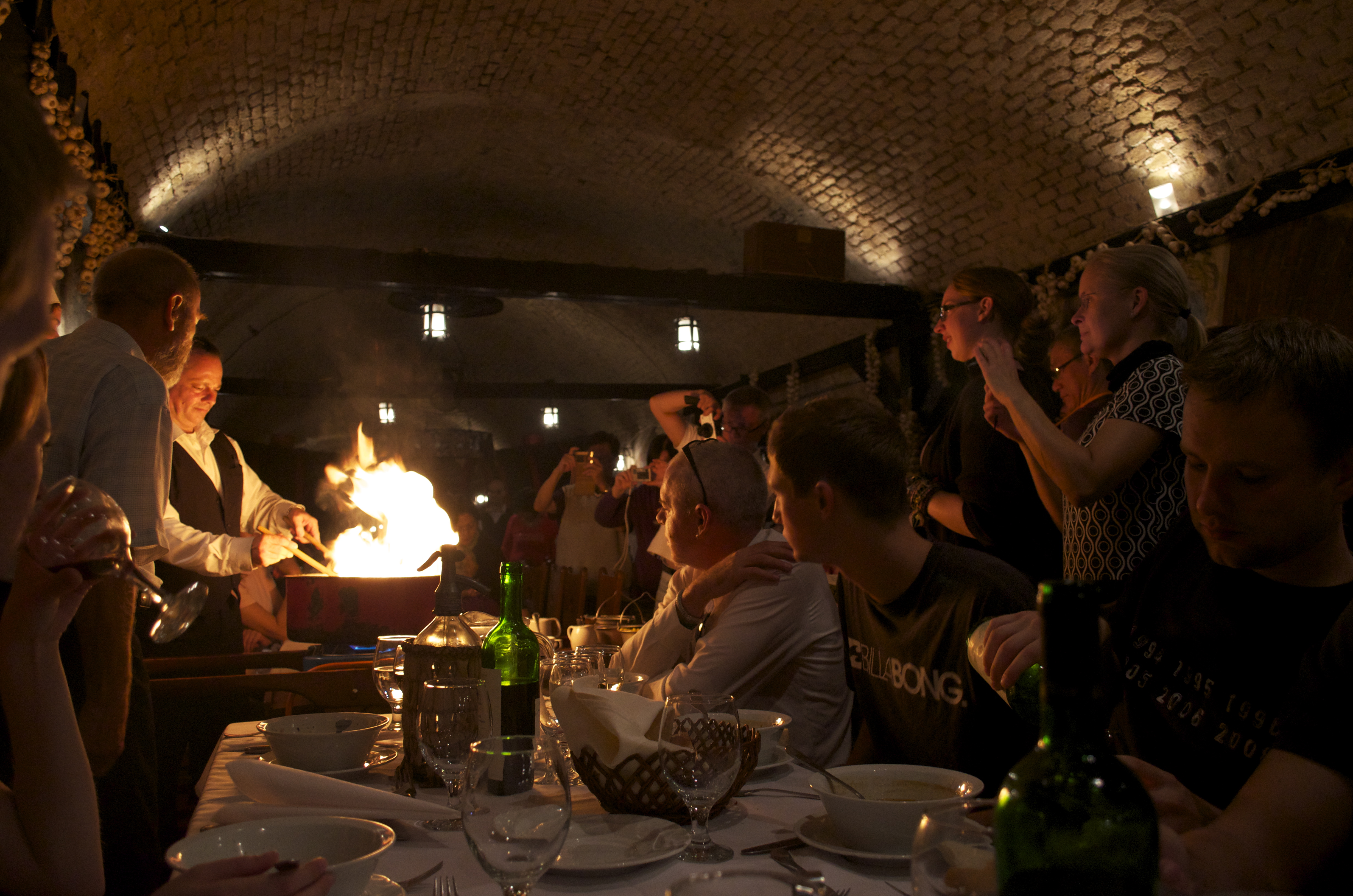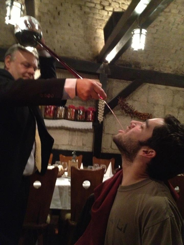 And the wine was absolutely delicious! They kept loading our table with new bottles – it’s hard to keep track of how many you’re drinking when you divide everything by 20. And the waiters came around with this big glass siphon-type thing and squirted it continuously in the tourists’ mouths. It was like a game, see how much you can drink before spilling. It’s actually quite difficult to swallow without closing your mouth. Try it some time.