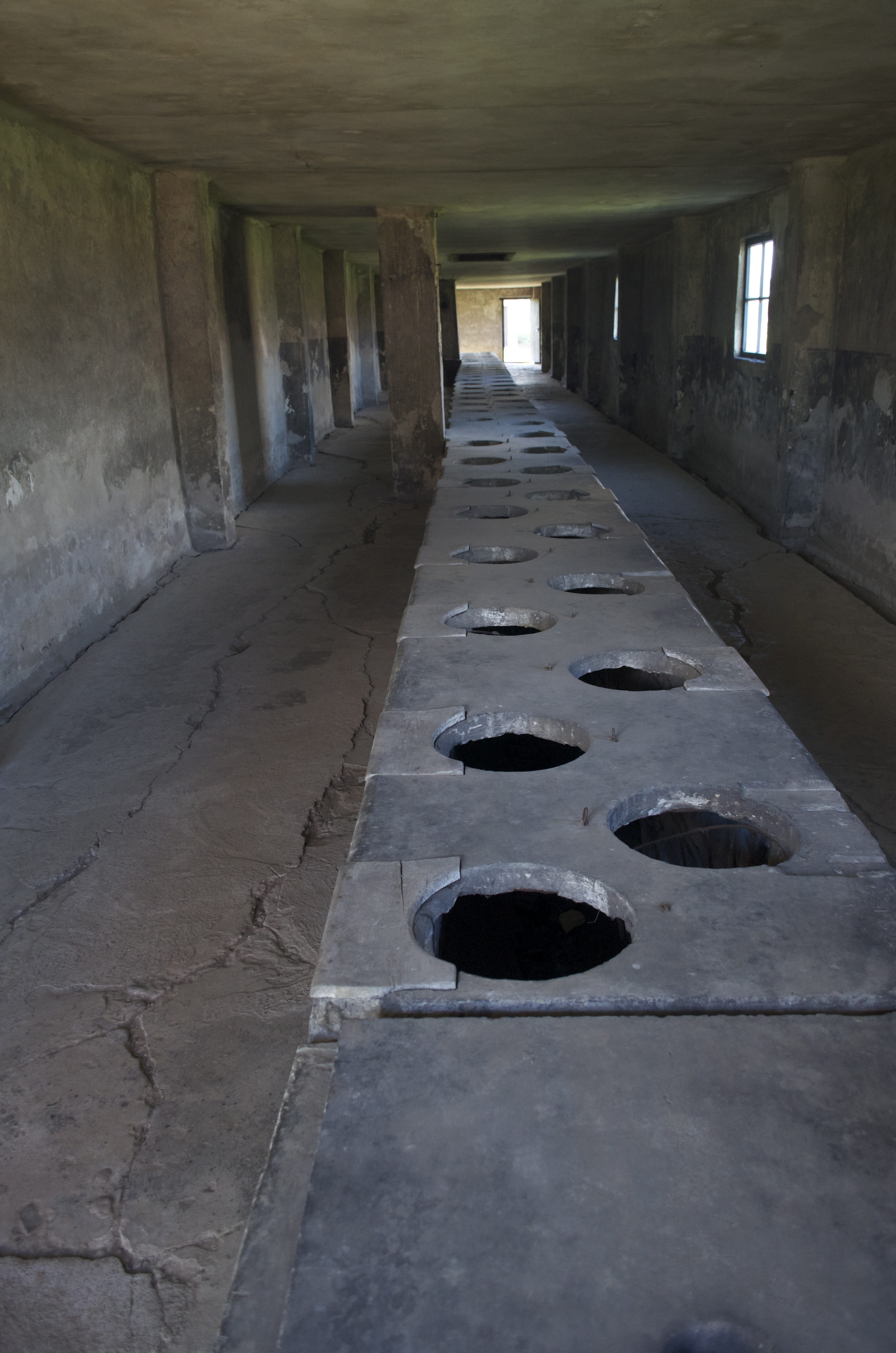 The women’s toilets at Auschwitz-Birkenau. No privacy, no place to wash your hands, and no underwear or stockings to put back on afterwards. This was the one place where there were no guards.