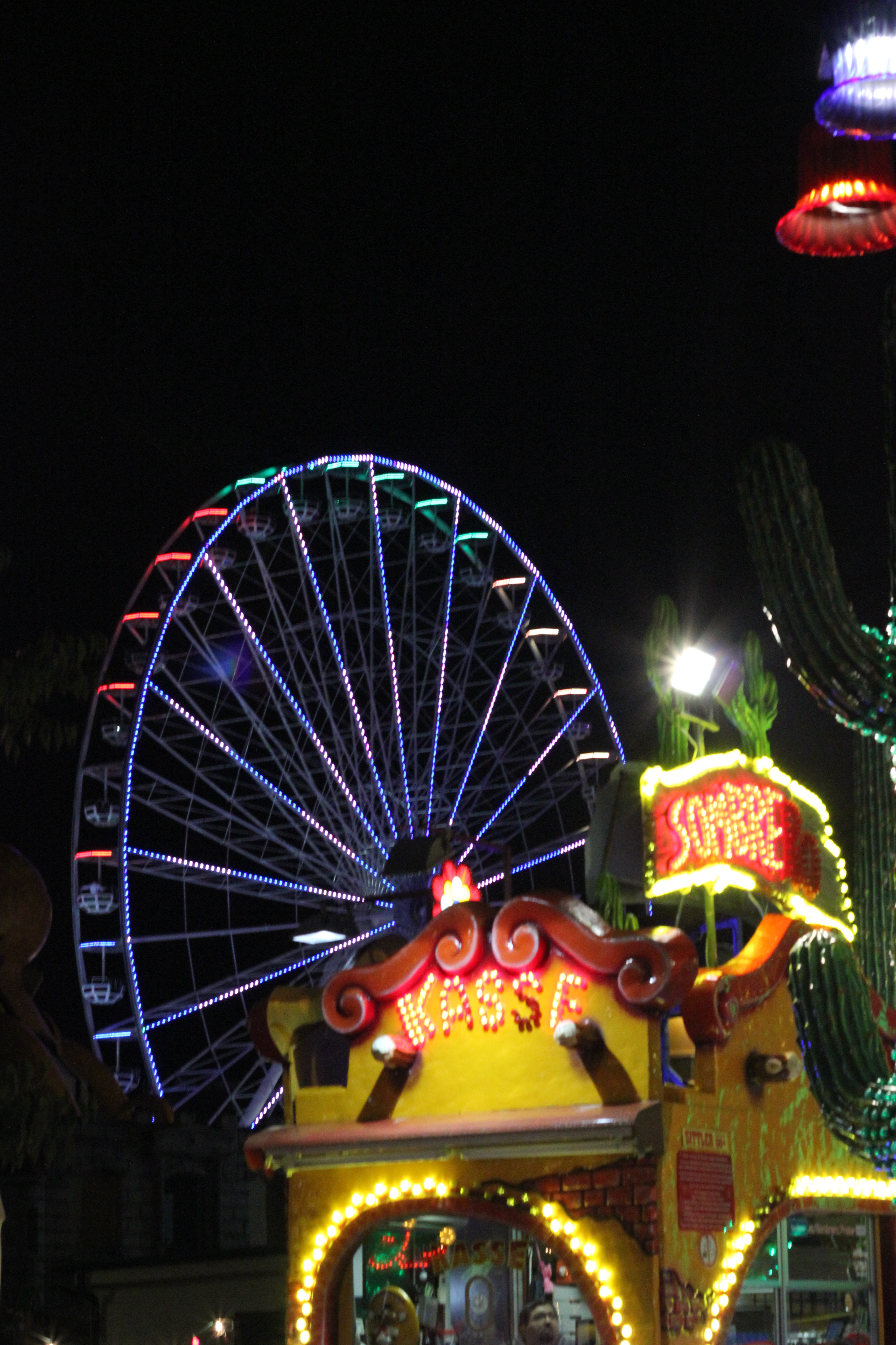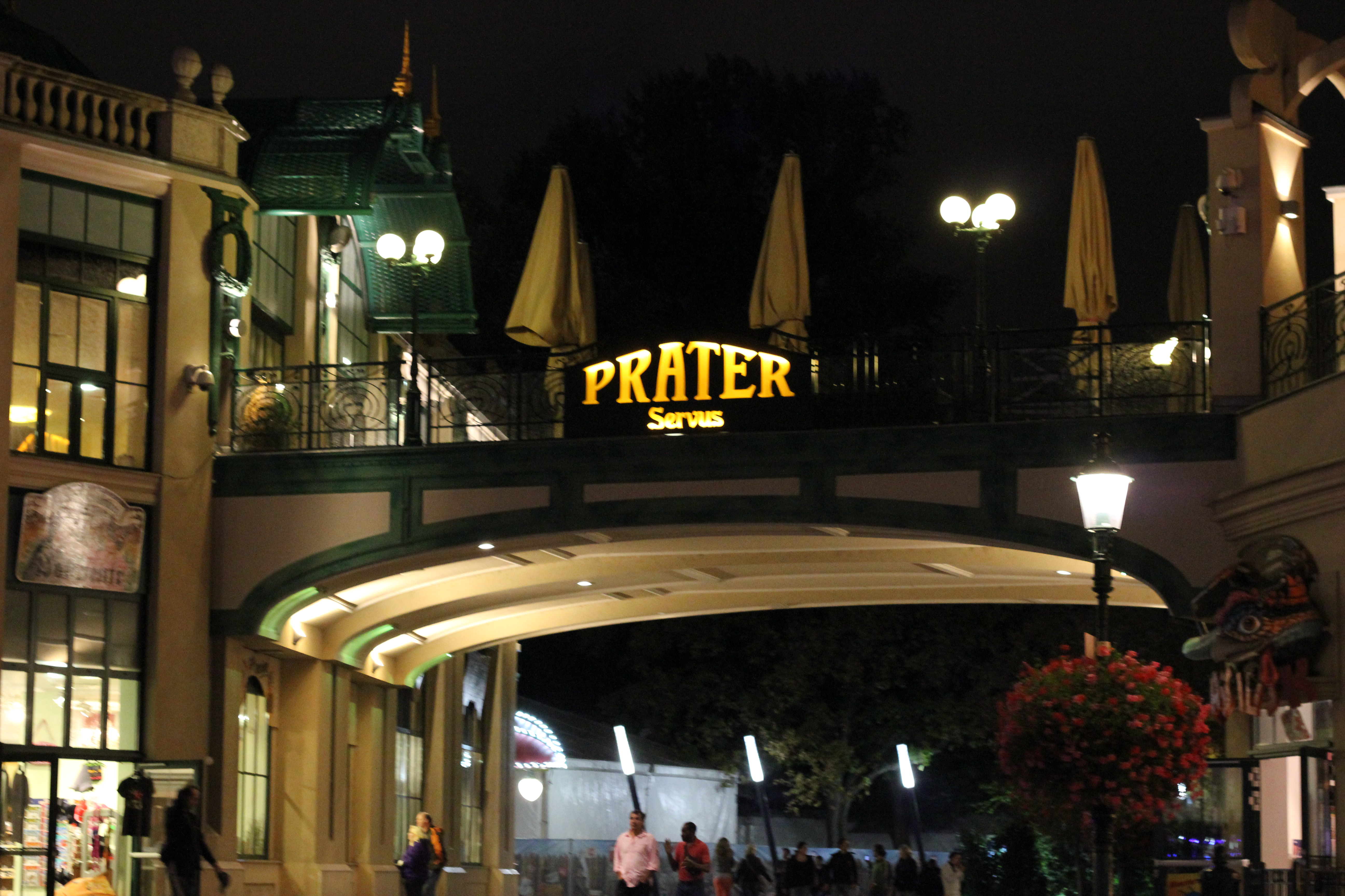 It was Oktoberfest week in Vienna, so after settling into our hotel rooms, me and a group of American students went to Prater, this big amusement park. It was a little drizzly out so it wasn’t too crowded. The first ride we went on, called Exstasy, absolutely kicked my butt. Imagine a mixture of the Scrambler and the Twister… now with blasting techno remixes, strobe lights and lasers. Now imagine that going upside-down and spinning fast enough to create a force of 3 G’s. I soon realized what the sign on the fence meant – “nicht für schwachen Nerven!”