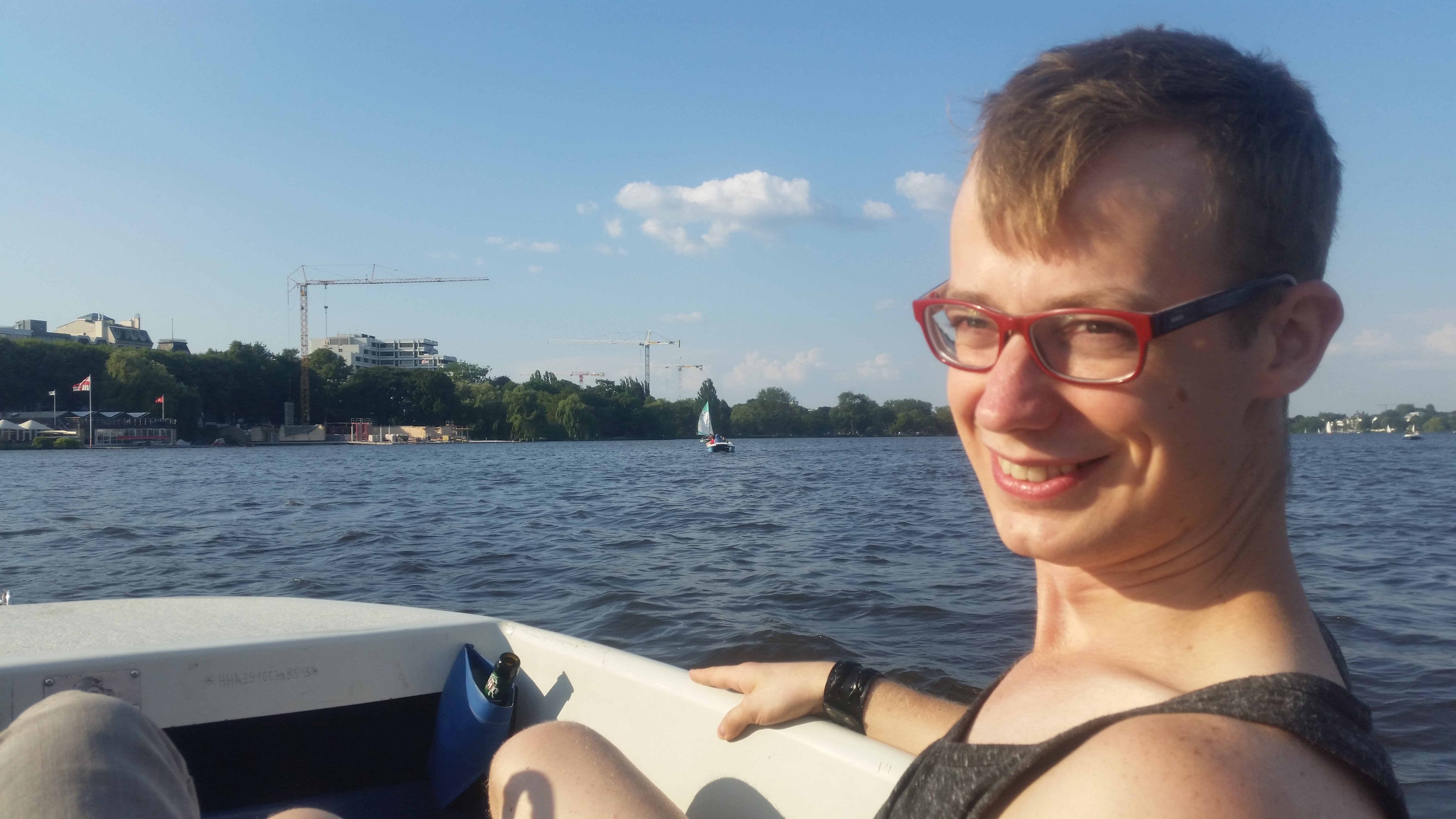We rented a paddle boat and paddled around the Alster and drank beer on a sunny afternoon.